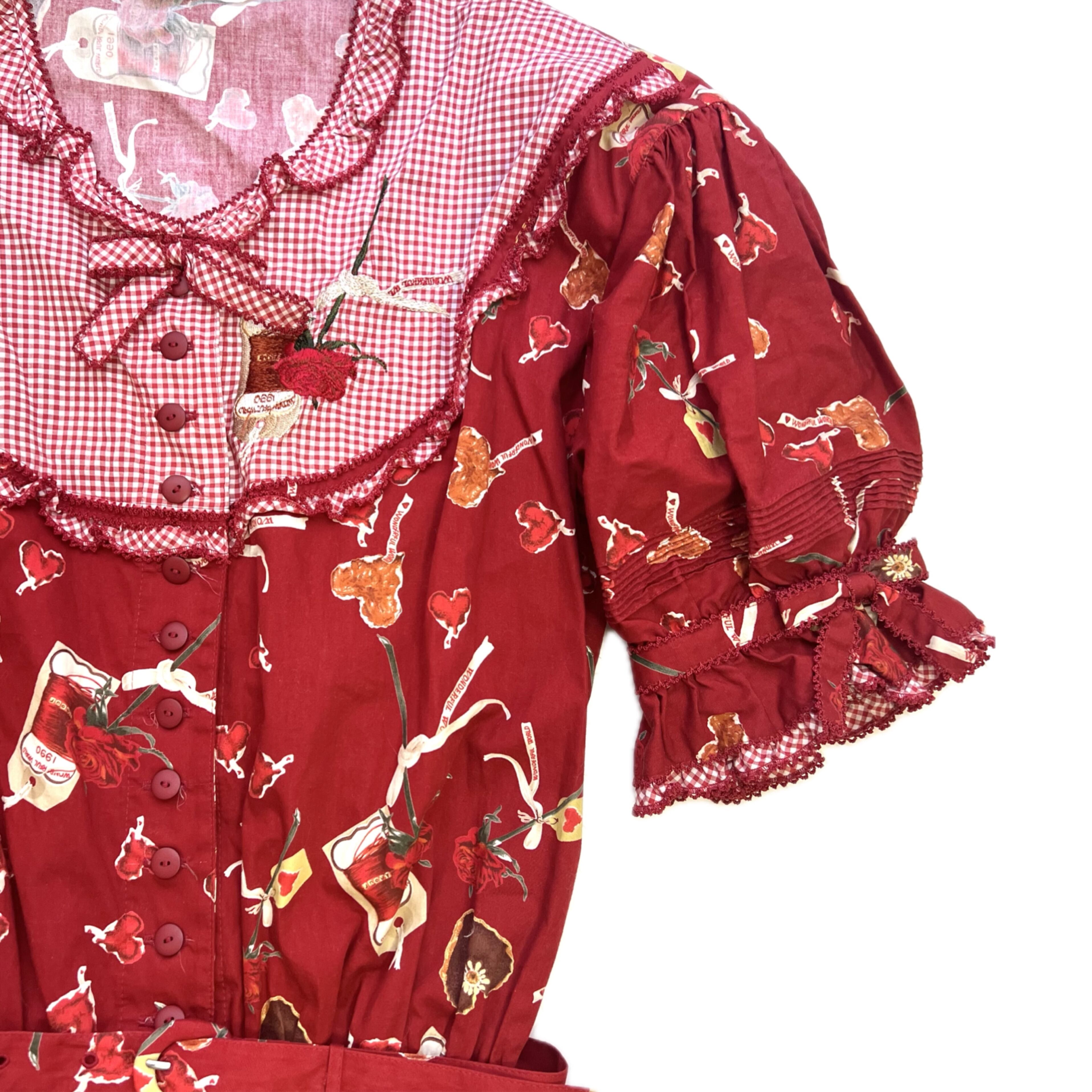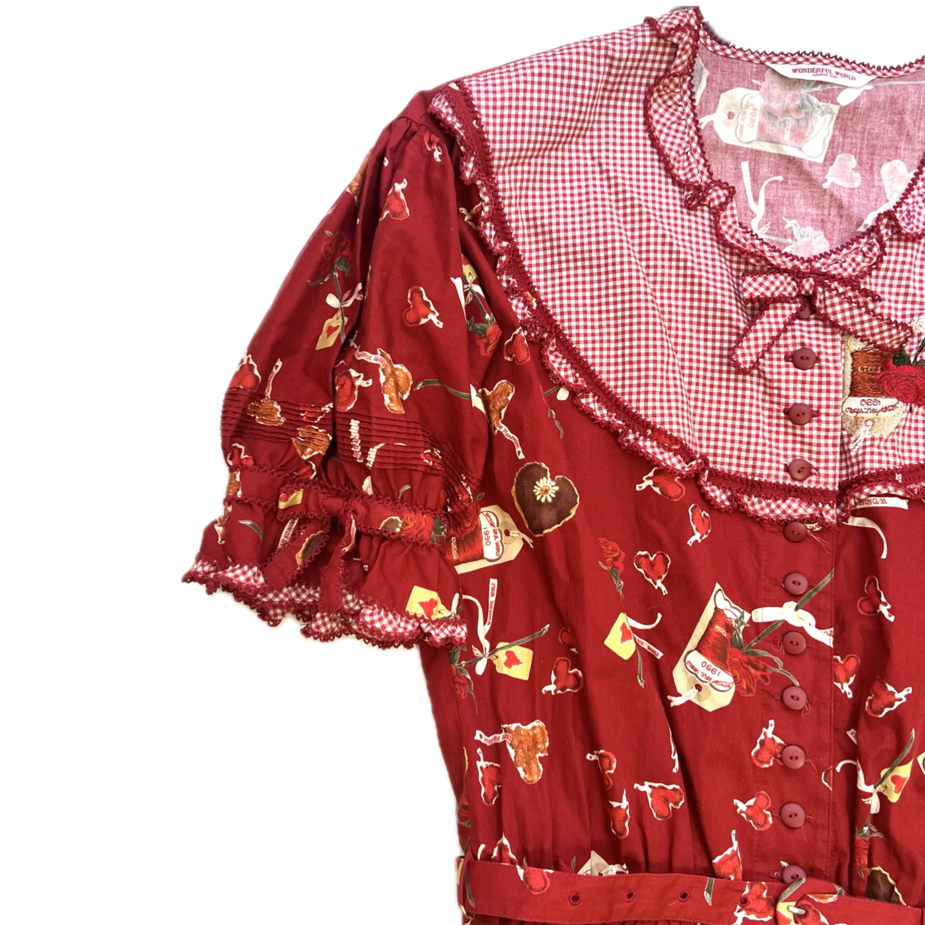 WONDERFUL WORLD ギンガムチェック切り替えワンピース