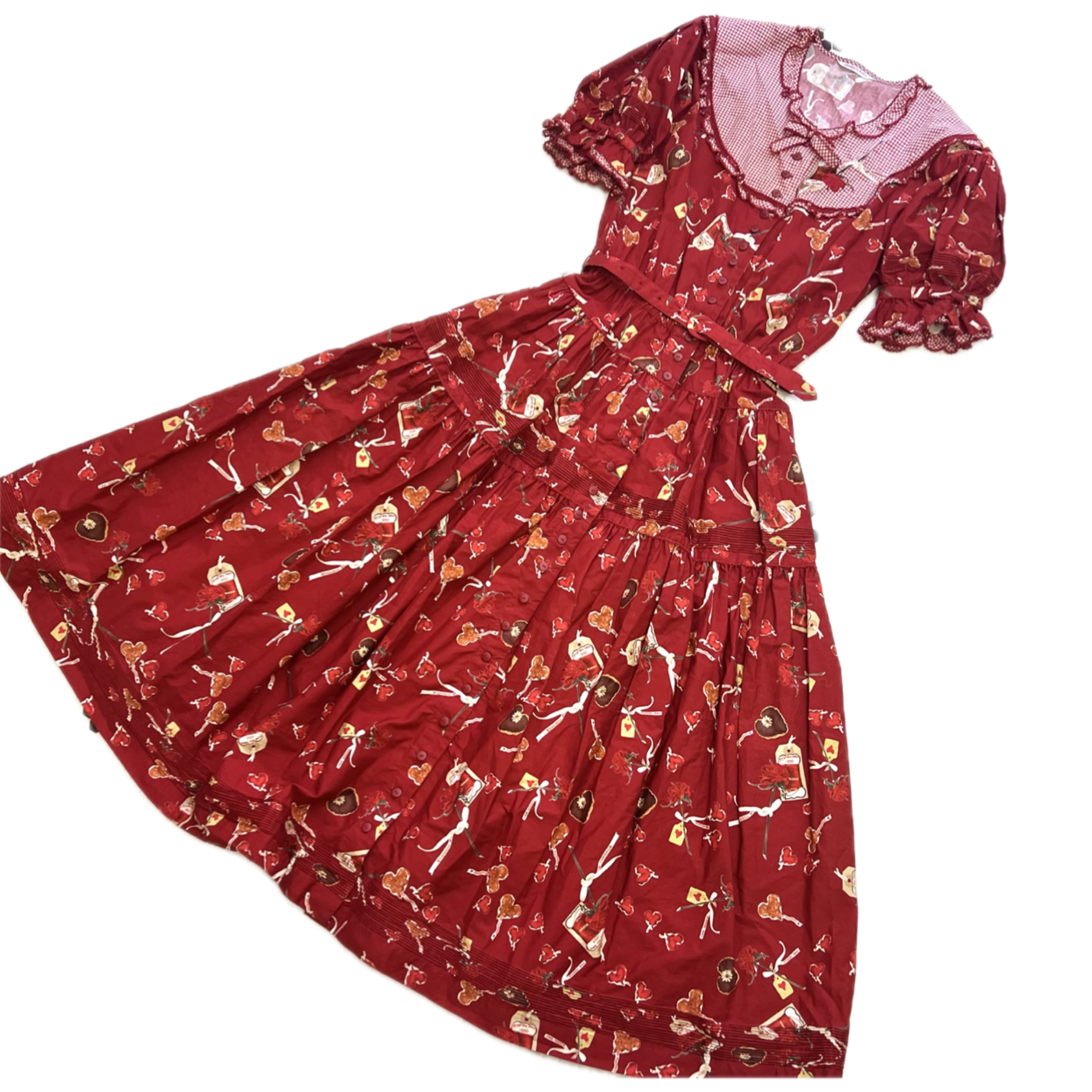 ハートやバラの花がプリントされた半袖ワンピース♪